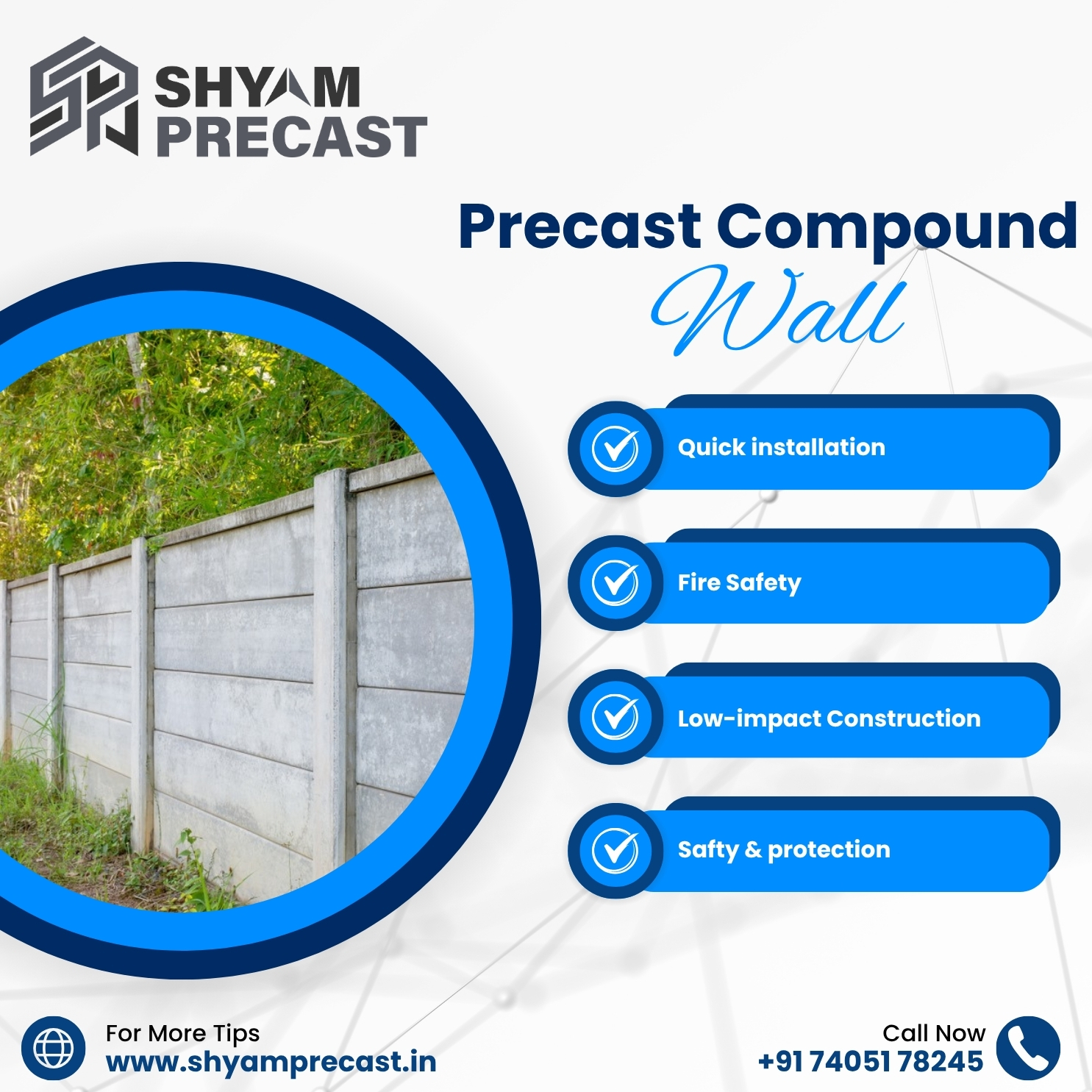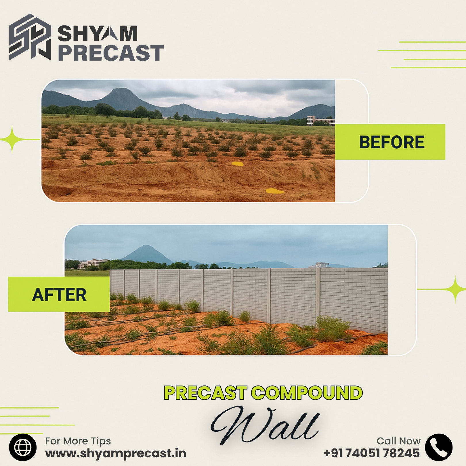 Shyam Precast, established in 2012, specializes in durable and high-quality precast compound walls, offering innovative solutions with a focus on reliability, efficiency, and customer satisfaction.